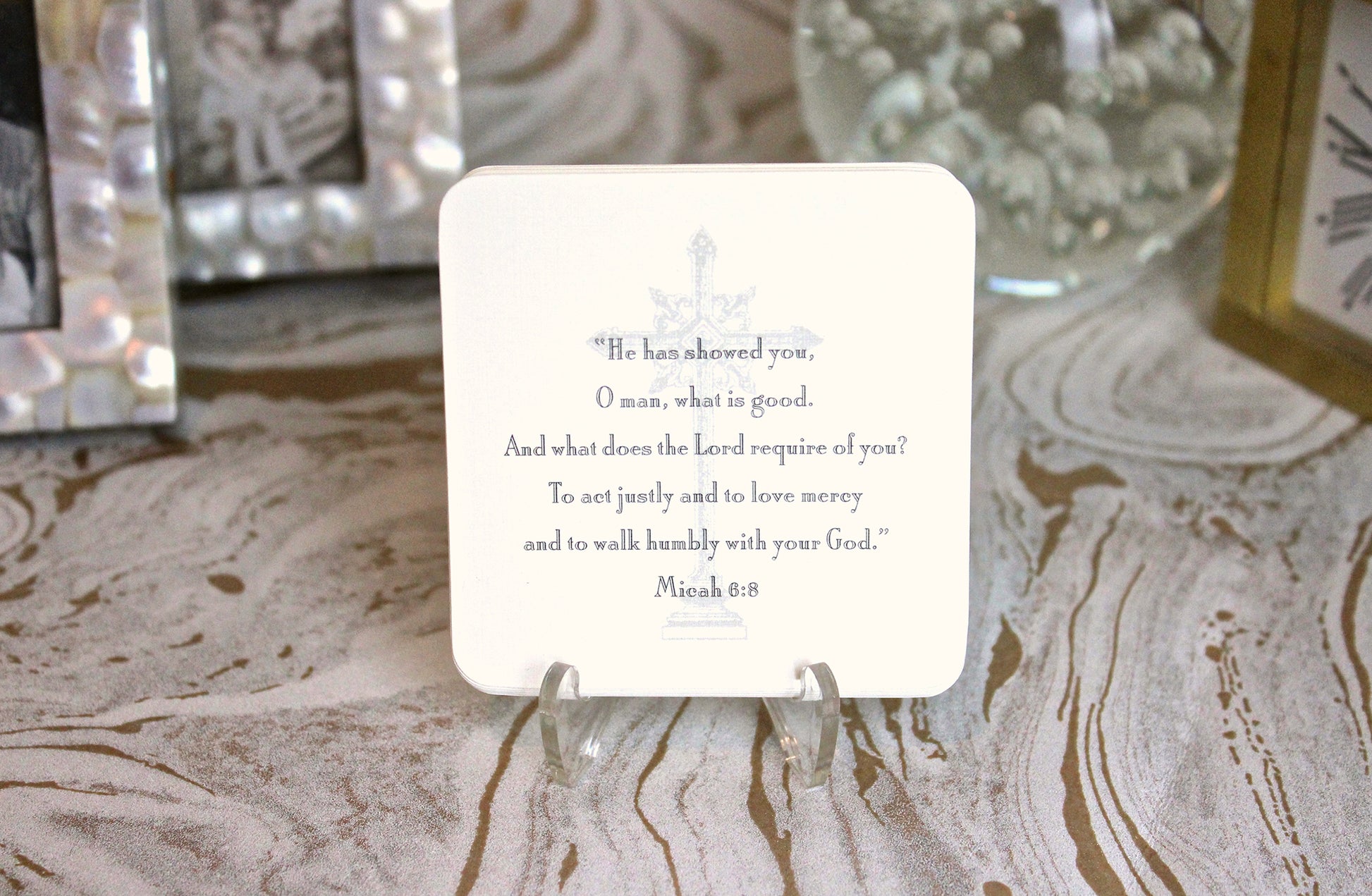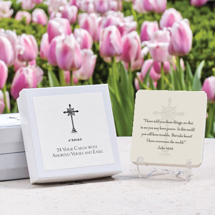 24 verse cards (3" x 3") with one acrylic easel.