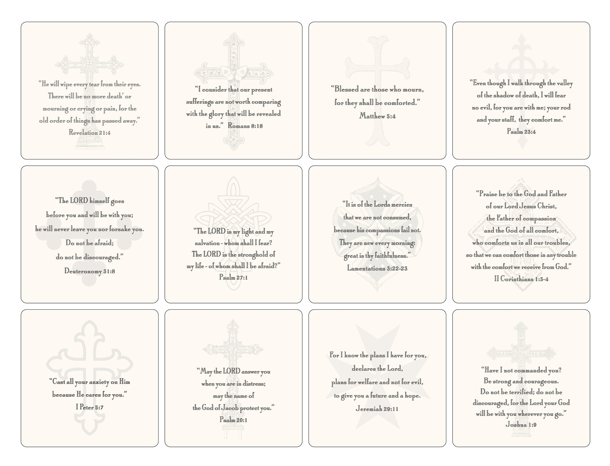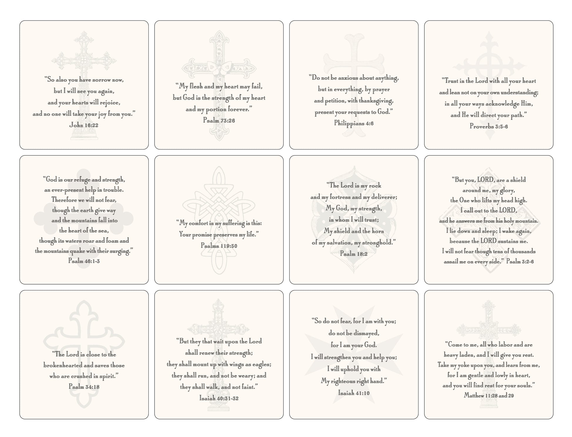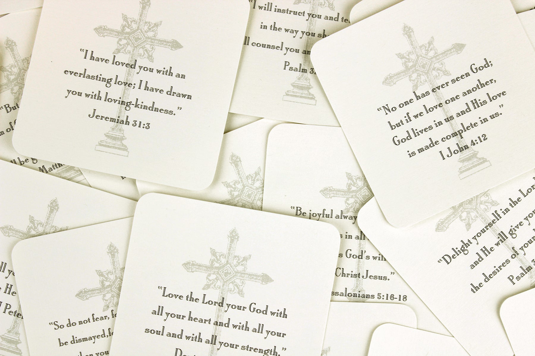 Each card is printed with a different verse.