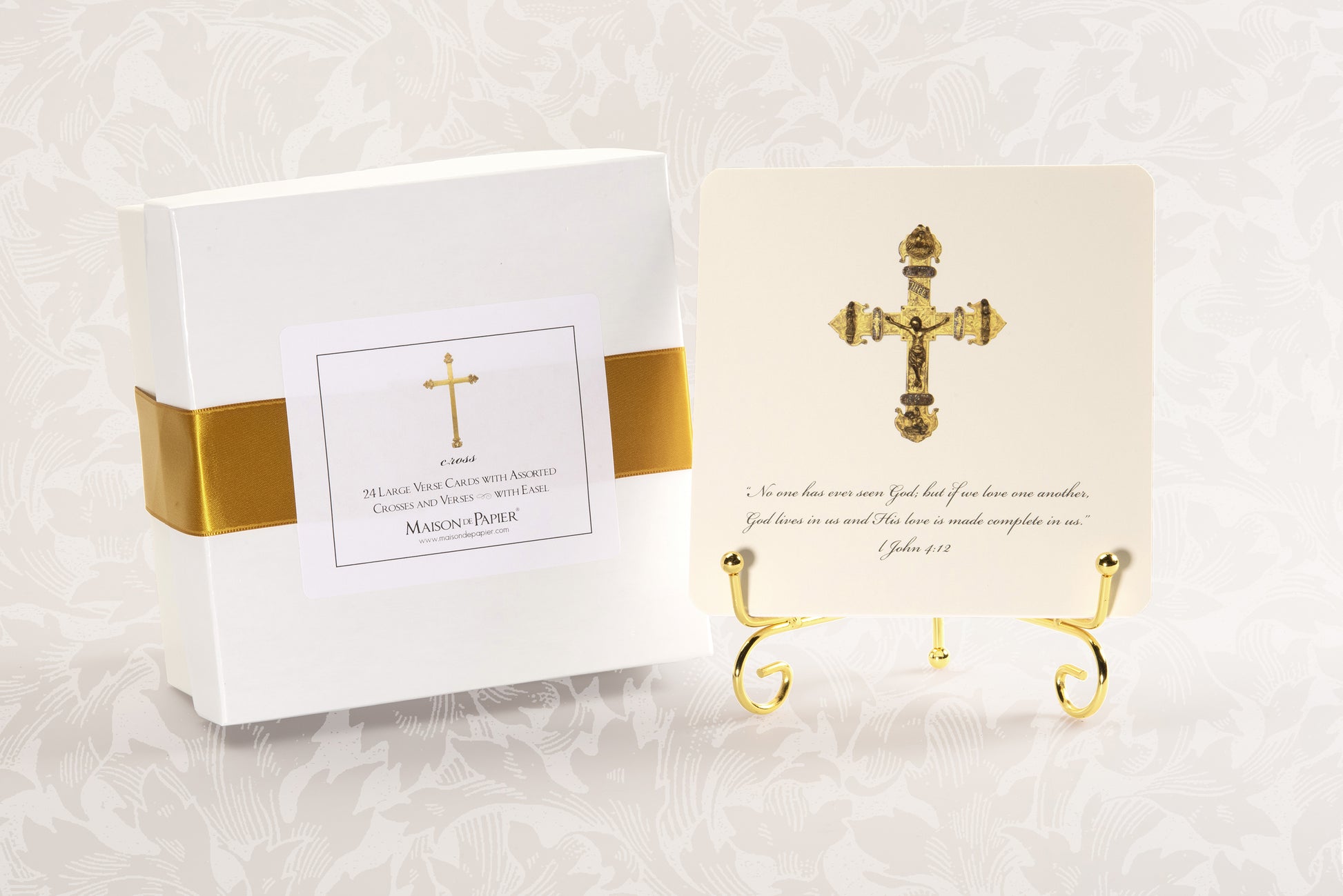 Introducing the Cross Oversized Verse Cards with Easel, a luxurious gift that combines timeless elegance with the power of inspirational Bible verses. This exquisite boxed set features 24, 5 ½ inch square cards adorned with classical cross motifs, meticulously designed to inspire and uplift the spirit.