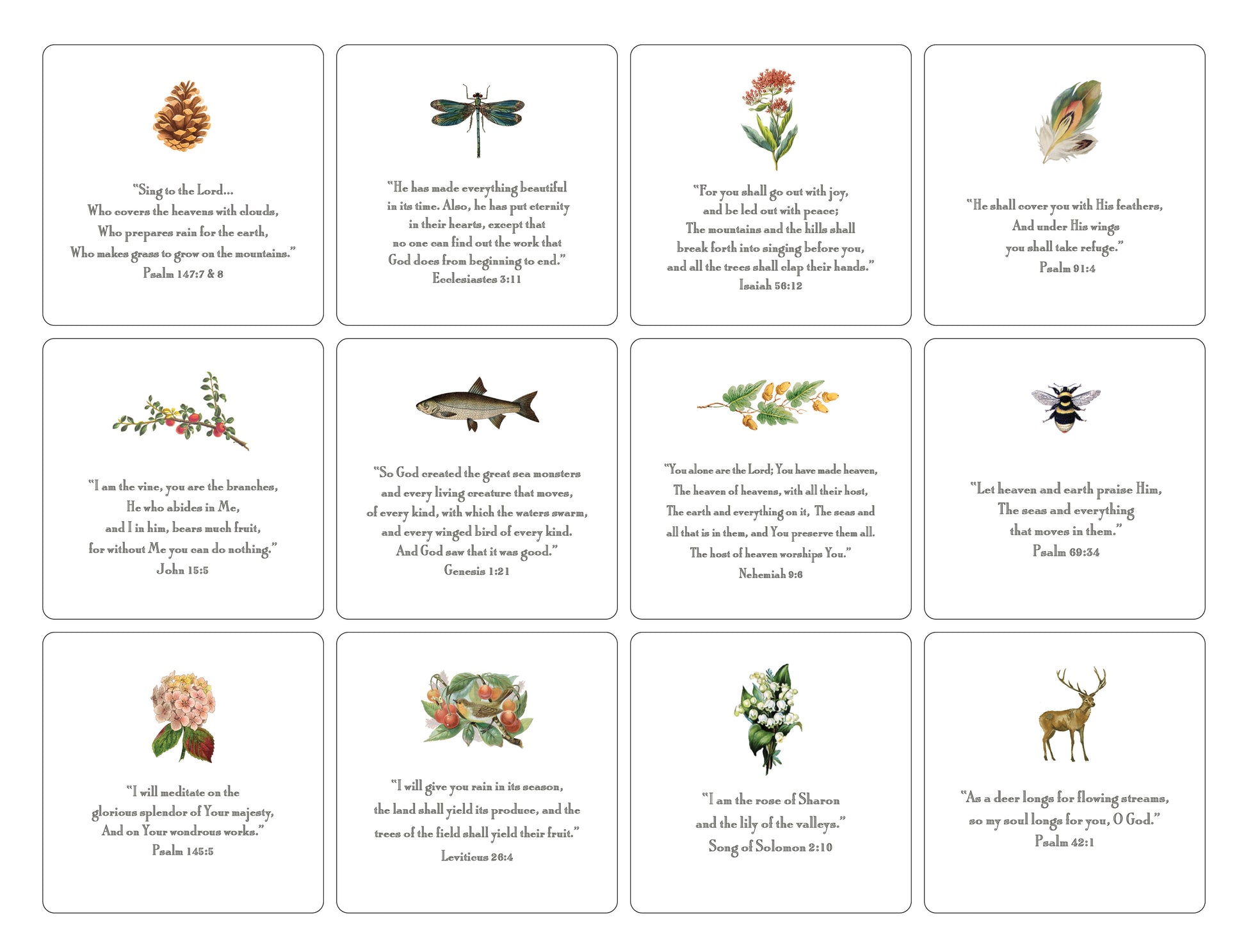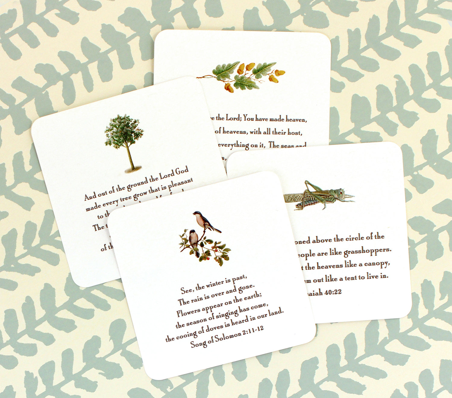 Each card is printed with a different motif and verse.