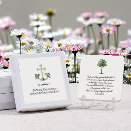 24 verse cards (3" x 3") with one acrylic easel.