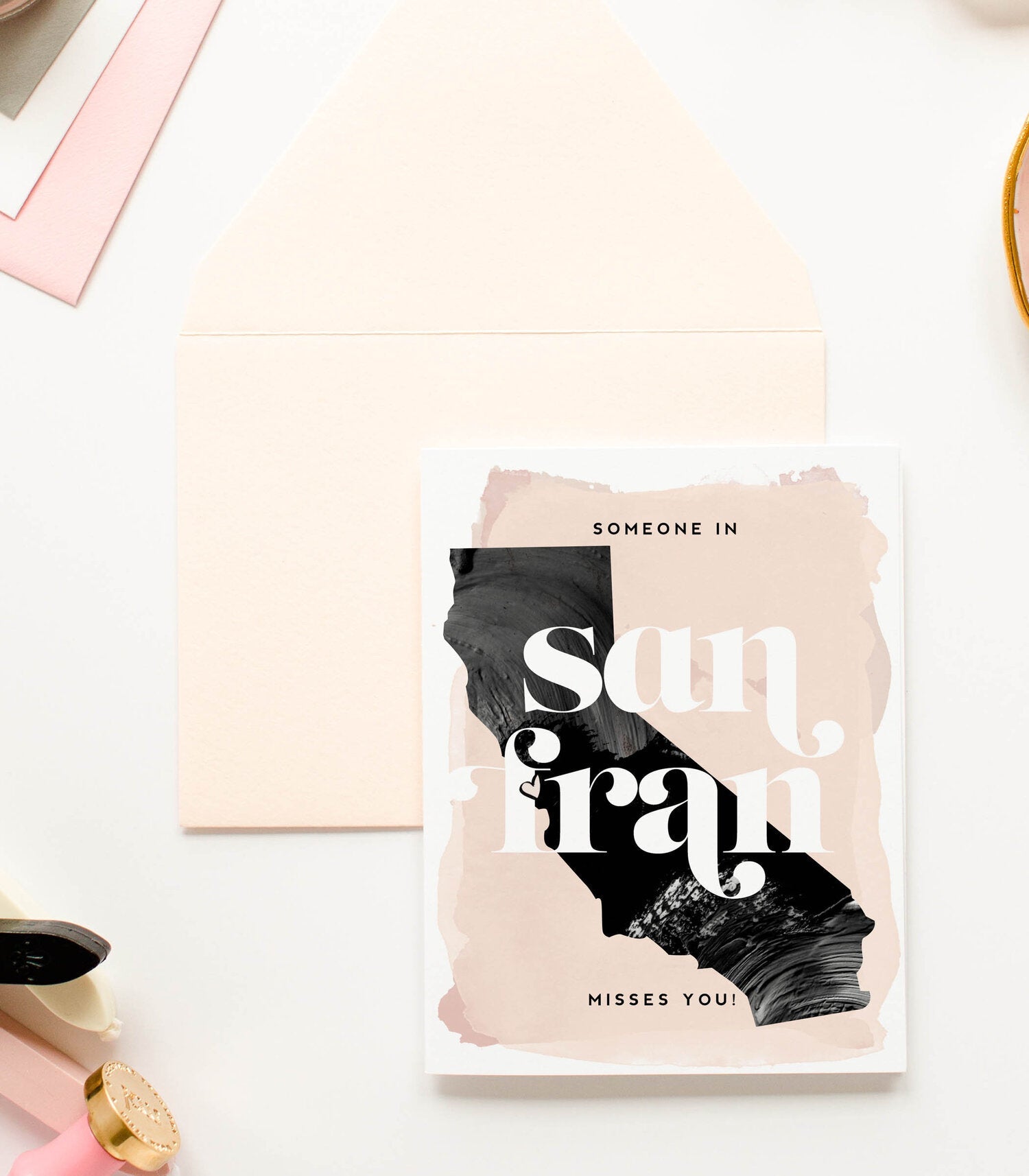 INTRODUCING KITTY MEOW'S "SOMEONE IN SAN FRAN MISSES YOU!" GREETING CARD FOR LOVERS OR FRIENDS