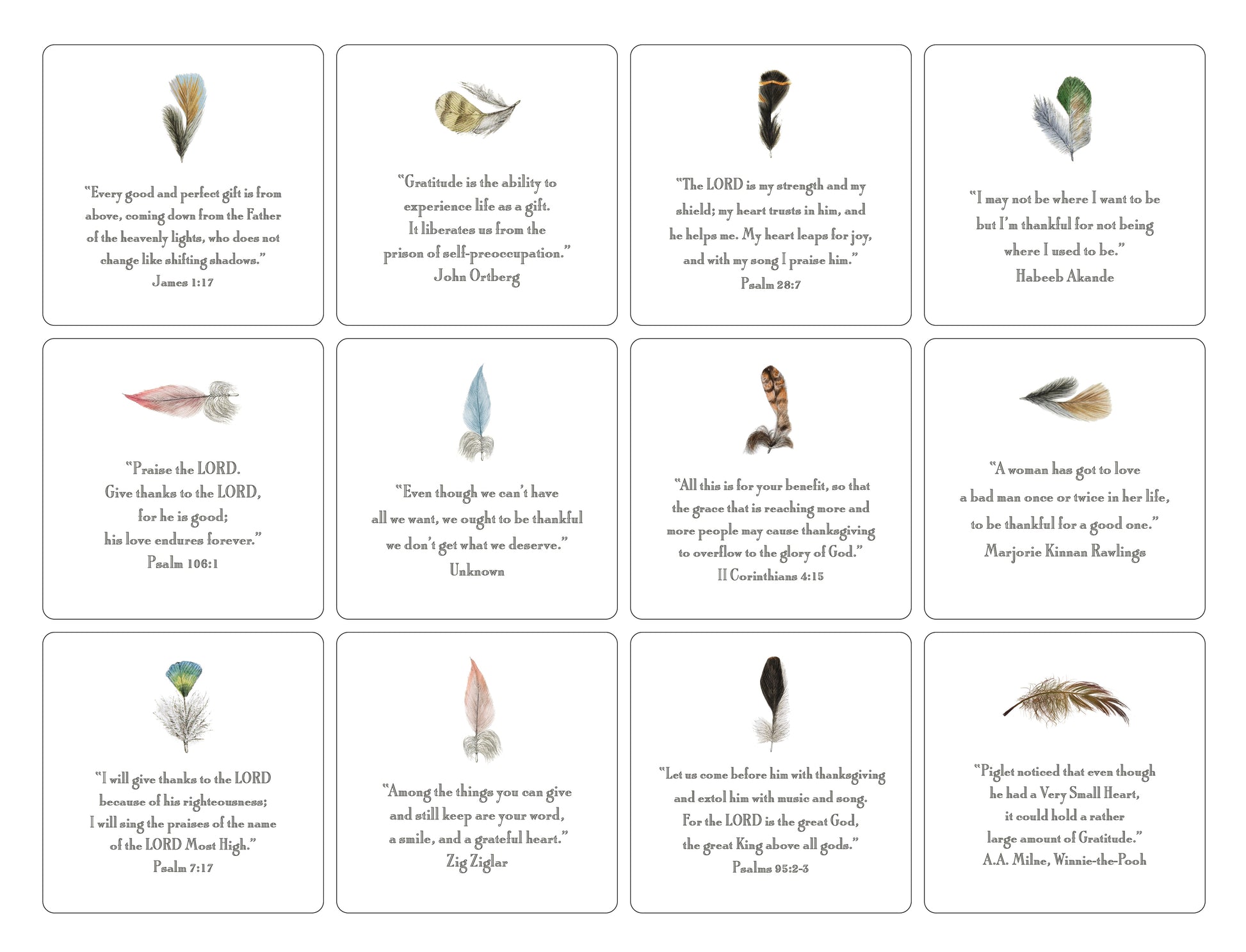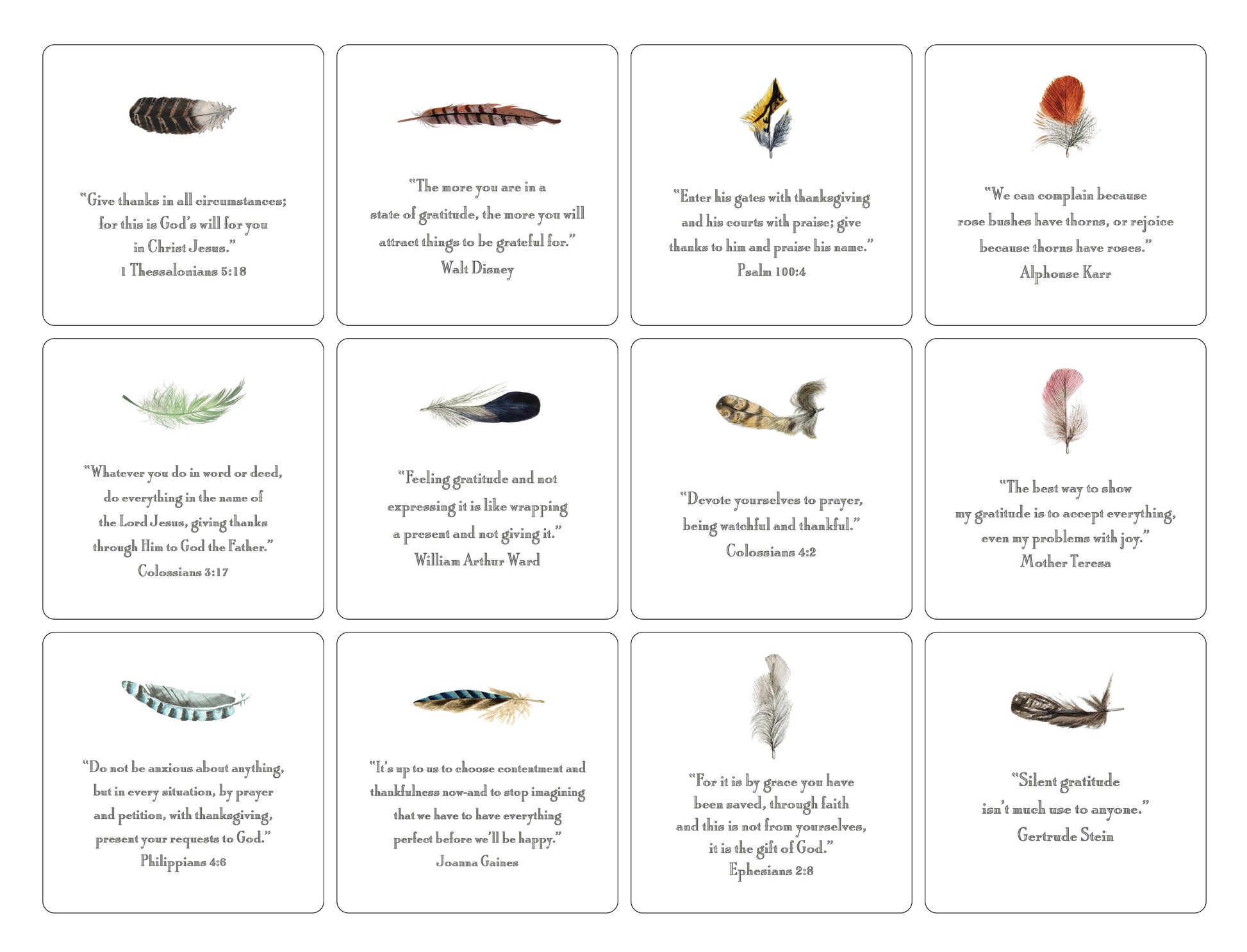 Each card is printed with a different verse.